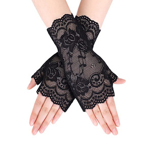 春夏季新款女士蕾丝半指开车骑车防晒手套婚礼跳舞广场...