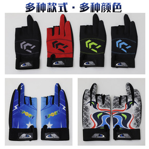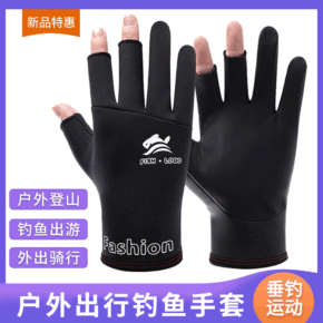外贸跨境钓鱼手套印花露三指春季男款垂钓手套自行车骑...