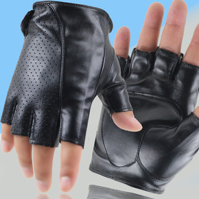 摩托车复古机车牛皮半指男士骑行健身露指开车女真皮手...