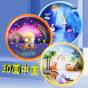 儿童3D立体画中画 幼儿创意圆形相框手工制作墙面装...