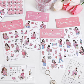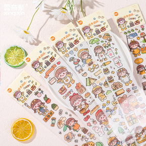 多加小麻署和纸贴纸包悠然午茶卡通女孩手账素材学生文...