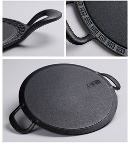 铸铁多功能煎锅无涂层物理不粘生铁鏊子家用烧烤平底锅...