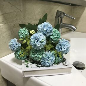 仿真花渐变蓝碎冰真玫瑰桌面装饰花手捧花装饰摆件in...