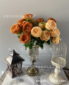 天津厂家批发仿真花束手捧花北欧保加利亚玫瑰花家居婚...