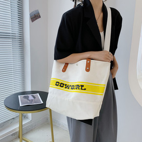 秋季大容量帆布韩版手提包2021上新字母纯色休闲简...