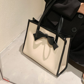 撞色包包女2021新款秋季潮韩版手提托特包洋气时尚...
