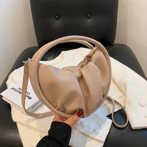 洋气手提褶皱包包女2021新款潮时尚复古单肩包秋冬...