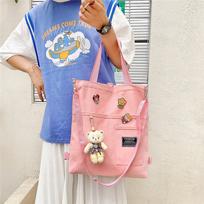 韩版大容量帆布女包 2021新款单肩包潮流甜美斜挎...
