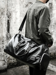 男士出差手提包斜跨包旅行包行李包间色织带旅游包...