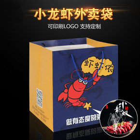 海鲜小龙虾外卖手提袋定做 彩色印刷logo大闸蟹礼...