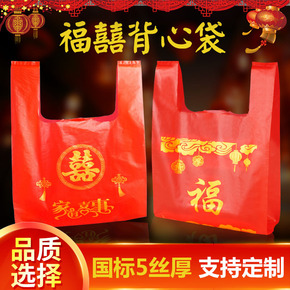 红色福字塑料袋双喜字手提袋结婚婚庆用方便胶袋喜事喜...