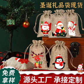 跨境专供圣诞麻布礼品袋 圣诞装饰悬浮道具小布袋礼品...