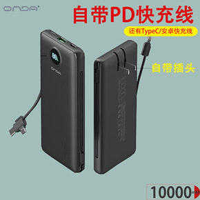 自带线充电宝超薄小巧便携10000毫安迷你移动电源...