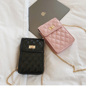 2020新款时尚包包女小香风菱格链条单肩包竖款手机...