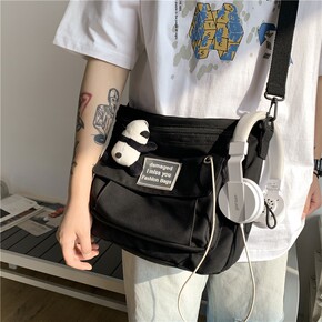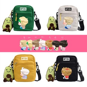 防弹少年团小方包卡通可爱娃娃书包印花帆布单肩包简约...