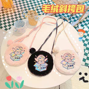 萌鸡毛绒单肩包 秋冬新款可爱女生配饰小圆包毛茸茸斜...