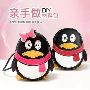 手工diy编织包包女手缝材包新款自制小企鹅单肩斜跨...