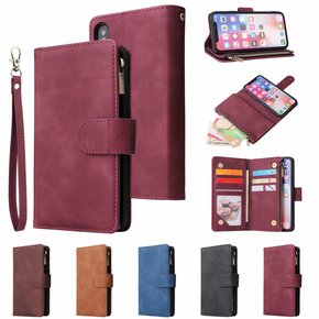 适用iPhone13手机皮套多卡拉链钱包苹果12多...