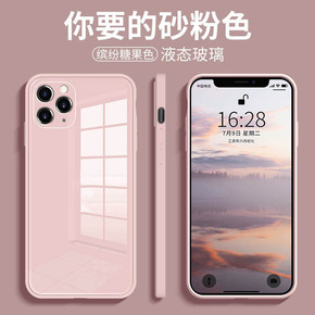 适用iPhone12直边液态硅胶手机壳苹果11玻璃...