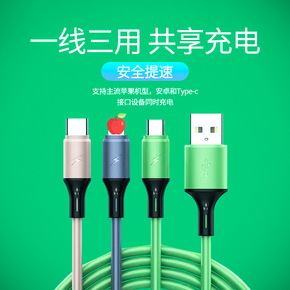 马卡龙一拖三充电线适用安卓华为Type-c苹果充电...