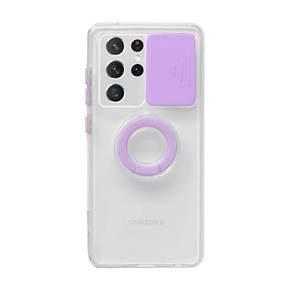 炫彩推窗指环扣支架三星S21透明TPU软壳精孔适用...