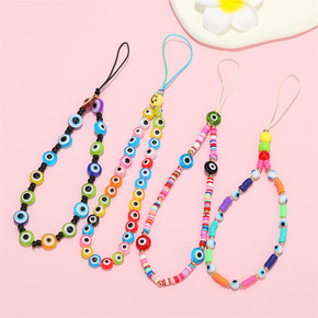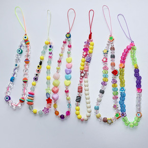 软陶彩色手机挂绳欧美流行水果爱心串珠手机挂链亚克力...