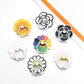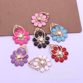 九叶花小花指环支架金属滴油镶钻花朵手机支架背贴指环...
