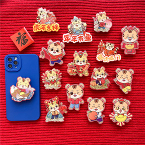 虎年卡通金箔滴胶气囊支架新年懒人可伸缩桌面支撑背贴...