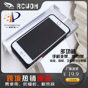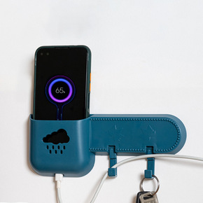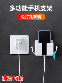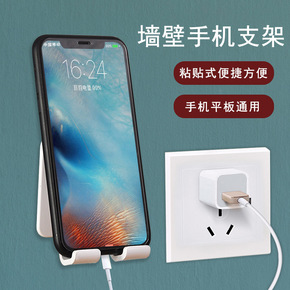 粘贴式免打孔壁挂置物架墙壁手机充电支架家用卧室床头...