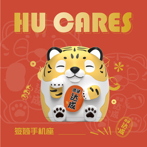 虎喵签筒手机支架盲盒趣味创意礼品潮玩手办可爱虎猫公...
