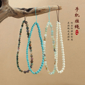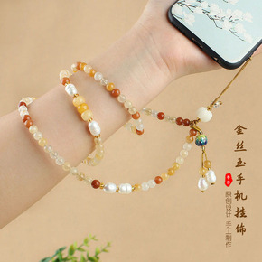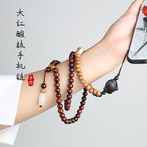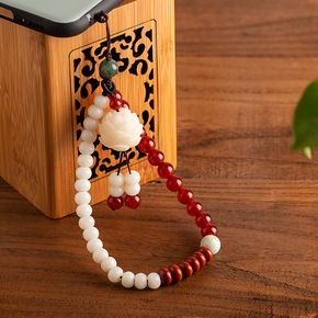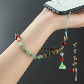 中国风手机挂绳虎眼木珠短款手机链福莲金刚手腕绳女防...