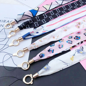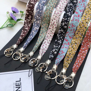 小香风碎花丝巾手机挂绳挂脖女长款不勒脖宽带子二合一...