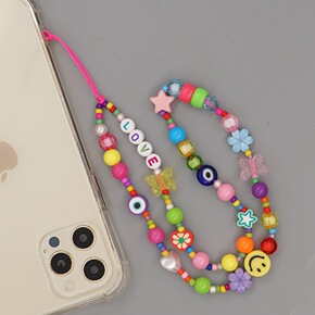 工厂现货手机挂绳短款手腕款桃心树脂配件挂绳指环挂绳...