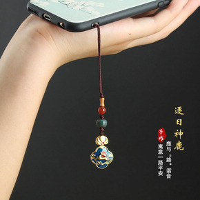 中国风铜生肖福虎手机链挂绳挂饰男女短款个性小吊坠挂...