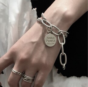 热销速卖通圆牌字母手链女复古做旧简约个性几何拼接链...