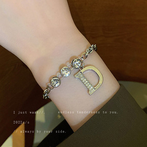 韩国时尚镶钻锆石字母D手链网红气质创意手串设计个性...