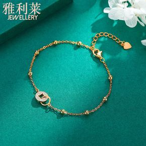 s925纯银钱币手链宫廷风本命年转运金钱铜钱手饰女...