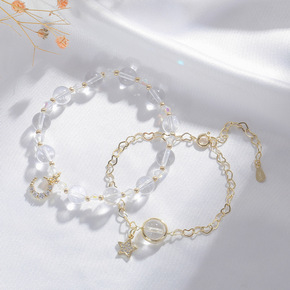 【星月皎洁】白水晶手链女逢考必过转运天然能量水晶双...