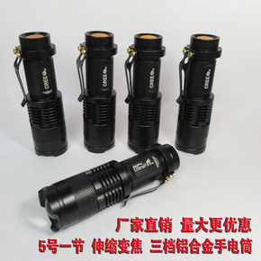 特价!迷你LED强光手电筒 三档调光流明伸缩变焦小...