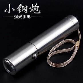 新品不锈钢手电筒强光迷你小钢炮充电超亮防水多功能远...
