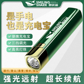 微笑鲨户外随身携带小型手电筒 高亮可充电迷你手电徒...