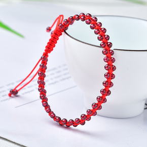 批发天然石榴石本命年红绳手链女 石榴石手牌国潮闺蜜...