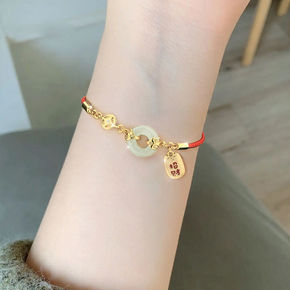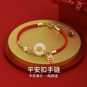 平安扣和田玉手链女本命年红绳手绳女生520情人节生...