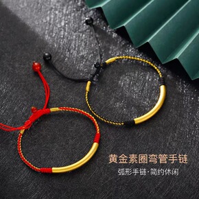 足金手链999弯管手串3D硬金素圈弯管编织手绳男女...