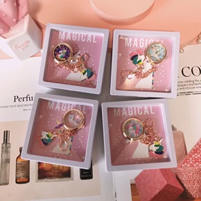 新款独角兽unicorn钥匙扣卡通怀表女孩学生背包...