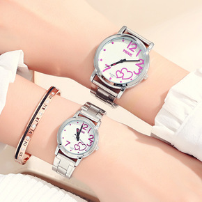 淘宝款香港米可8196时尚学生手表爱心不锈钢防水情...