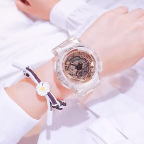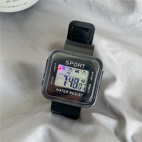 电子表ins独角兽手表女学生防水夜光简约抹茶方块透...