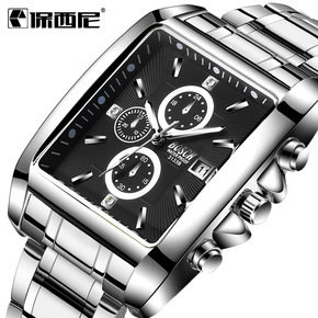 TAISIGE直播新款时尚潮流方形网格盘三针乌钢男...