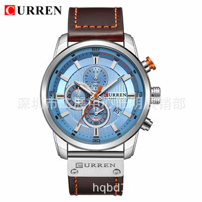 CURREN卡瑞恩8301日历 男士手表水 商务皮...