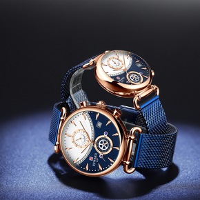 厂家跨境款式外贸情侣钢带金色运动手表简约男士石英表...